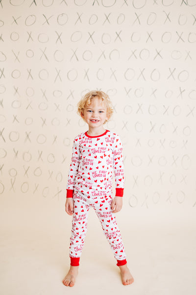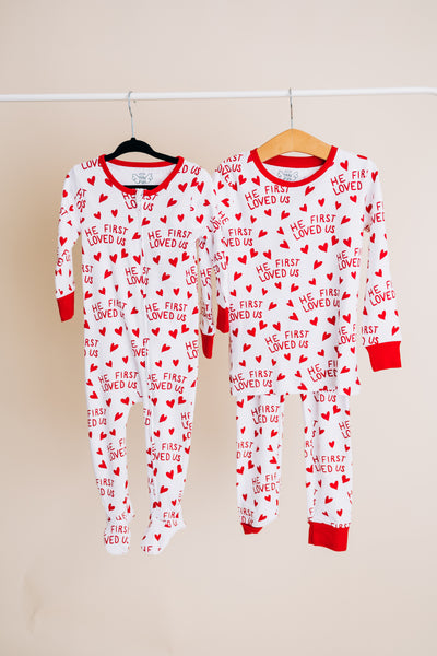 Inspired by 1 John 4:19: "We love because He first loved us", these PJs are a perfect reminder of God's unconditional love for us, and a great way to discuss his love with your children and grandchildren!